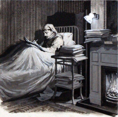 «Я слишком часто — и притом безуспешно — вынужден посещать туалет», — жаловался Пруст врачу. Каждые две недели он принимал самое сильное из существовавших тогда слабительных. Его мучает боль в желудке, резь при мочеиспускании, у него повышен уровень мочевой кислоты. Он не может использовать ни мыла, ни лосьона и только протирает кожу двадцатью льняными салфетками. Пруст полжизни провел лежа, а сейчас его кушетка — музейный экспонат! Еще он страшно боялся мышей. Ему всегда было холодно, но топить камин он не разрешал и согревался бутылками с горячей водой. У Пруста вечно был насморк, он часами кашлял. А еще боялся высоты и патологически не любил шума (стены спальни Пруста были обиты пробкой). Любопытно, что он негативно относился к тем людям, которые считали его болезни, мягко говоря, надуманными. Он всерьез считал себя инвалидом и 16 лет подряд твердил всем, что вот‑вот умрет. При этом Пруст благополучно пережил многих из тех, кому жаловался! Свое обычное состояние он описывал как «подвешенное между кофеином, аспирином, астмой, грудной жабой, а также между жизнью и смертью минимум каждые шесть дней из семи». Он не мог заснуть, съев что-то или выпив стакан воды на ночь. Словом, никакой жизненной энергии, никакого тенниса или гребли, никаких заработанных лично денег, никаких детей и никакого уважения вплоть до последних лет жизни. А когда его имя стало известным, он уже был тяжело болен. «Мысль о смерти окончательно обосновалась в моей душе, как прежде мысль о любви. Не то чтобы я любил смерть — я ее ненавидел. Но, думая о ней время от времени как о женщине, которую еще не любишь, я приобщил ее к самому глубокому пласту моего сознания, и если какой‑нибудь предмет еще не пересек идеи смерти, я не мог заняться им; даже если я был свободен и пребывал в полном покое, мысль о смерти составляла мне столь же неотвязную компанию, как мысль о себе… Вечная жизнь отпущена книгам не в большей степени, чем людям». Вполне понятно, что поводов для тяжелого внутреннего конфликта, способного разрядиться в приступах удушья, у М. Пруста было предостаточно!